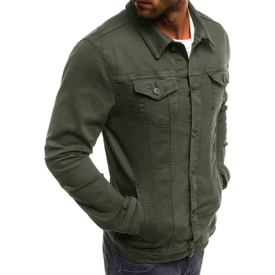 Men Casual Classic Slim Fit Denim Jacket Green1 XL Fashion Stand Collar Front Logo Breathable Men's Denim Jacket OEM Design