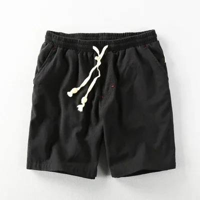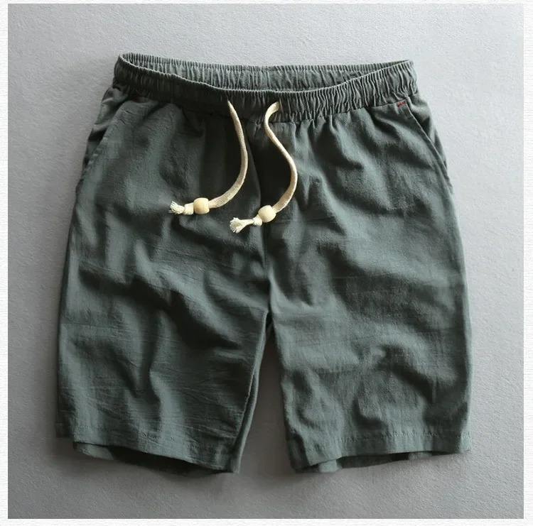 Men Casual Cotton Linen Shorts Knee Length Beach Elastic Waist Shorts Solid Color Comfortable Pants