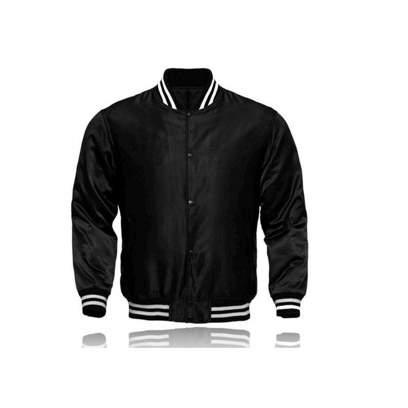 Men's Casual Custom Logo Polyester Baseball Varsity Jacket with Stand Collar Waterproof Windproof Winter Satin Lining
