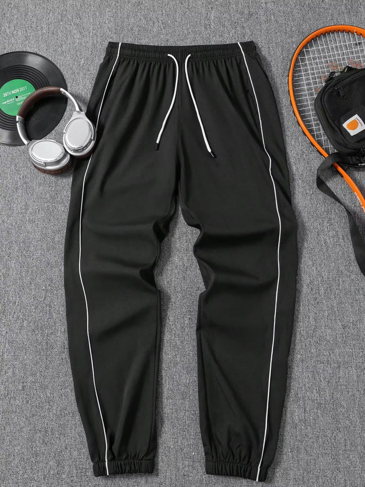 Men Casual Sports Long Pants Loose Cuffed Style Drapey Fabric Comfortable Daily Wear Lightweight Trousers Contrast Color