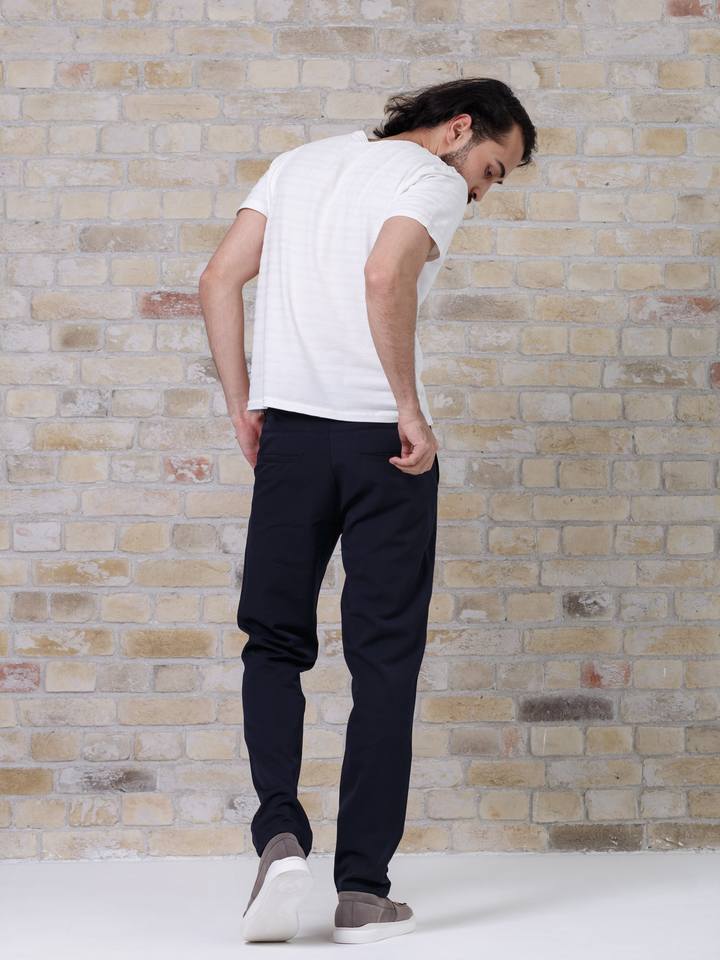 Men Casual Straight Chino Pants Dark Blue Elastic Waist Modern Design Comfortable Winter Trousers with Custom Logo