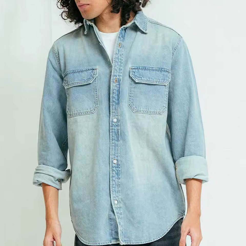Men Casual Work Jeans Shirt Soft Cotton Slim Fit Shirt Men Fashion Jeans Shirt Classic Long Sleeve Everyday Top