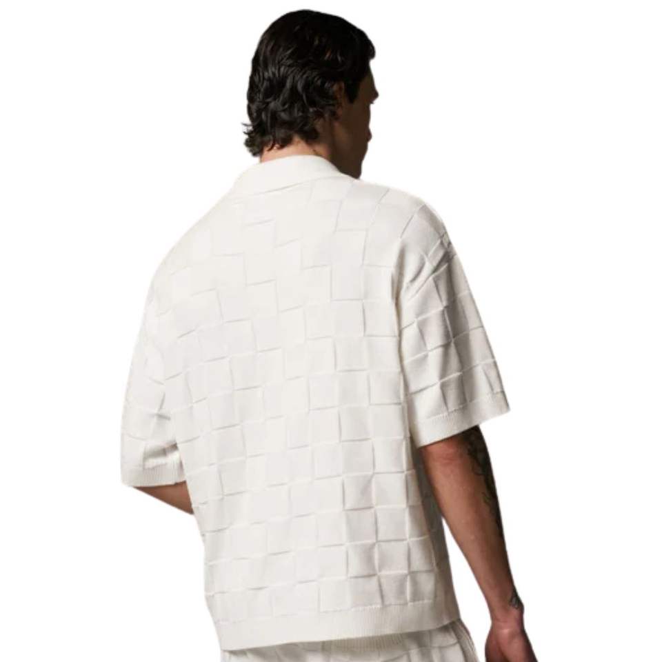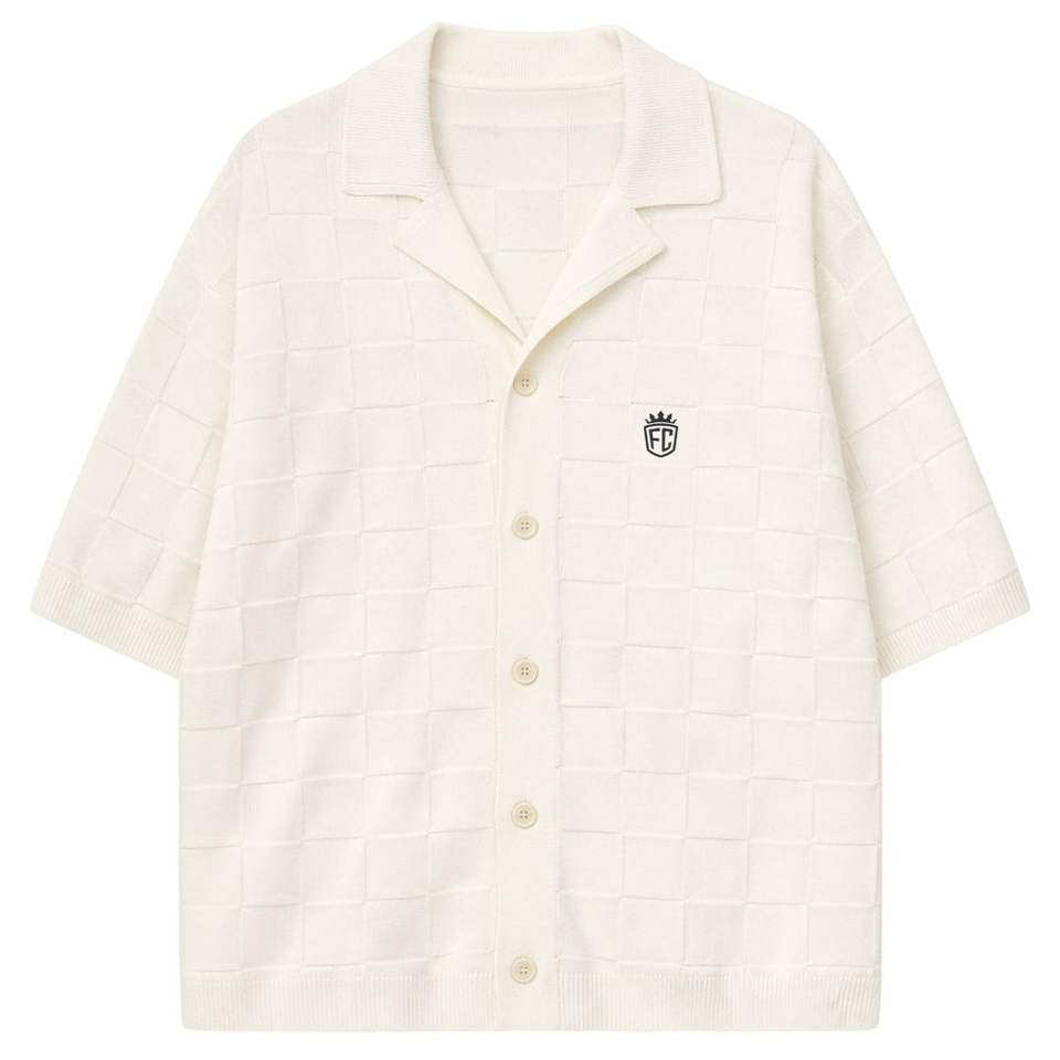 Men Checkerboard Knitted Shirt Short Sleeve Button Down Casual Summer Knitwear Top White OEM Wholesale Supply