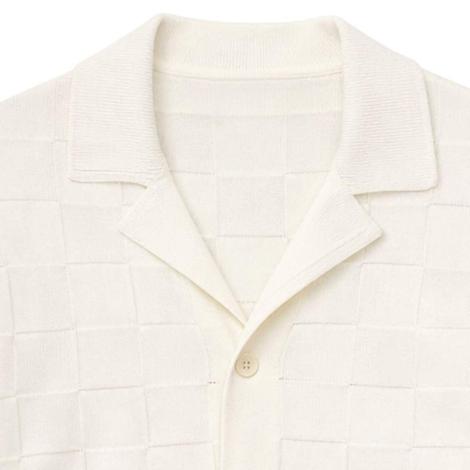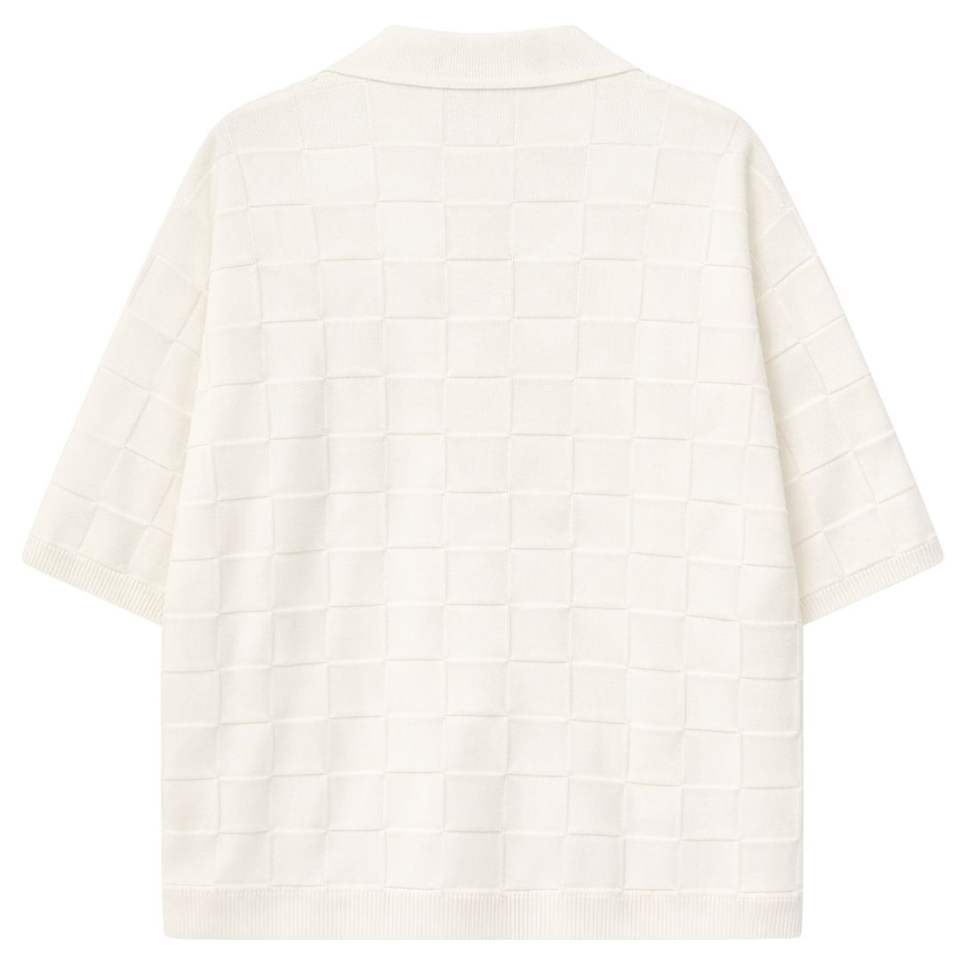 Men Checkerboard Knitted Shirt Short Sleeve Button Down Casual Summer Knitwear Top White OEM Wholesale Supply