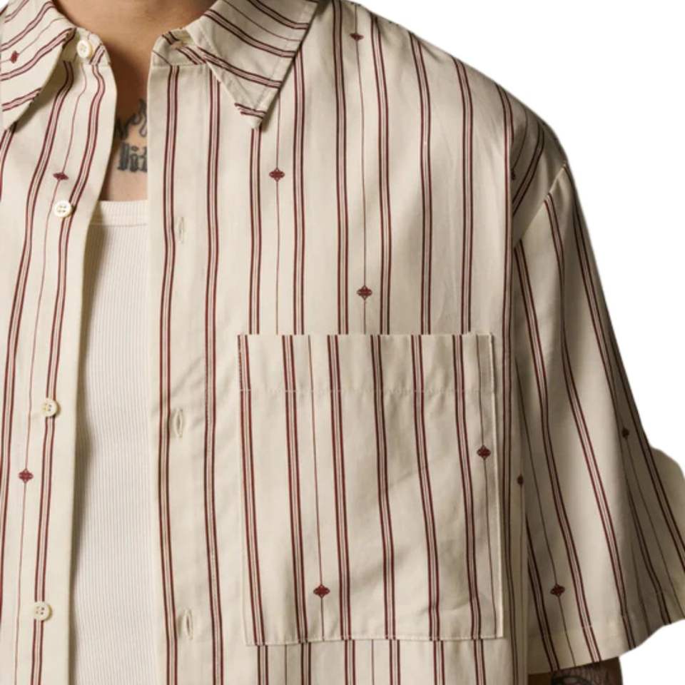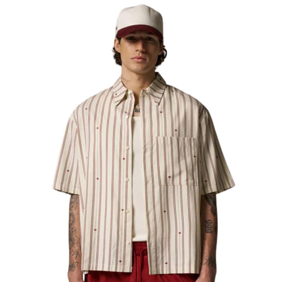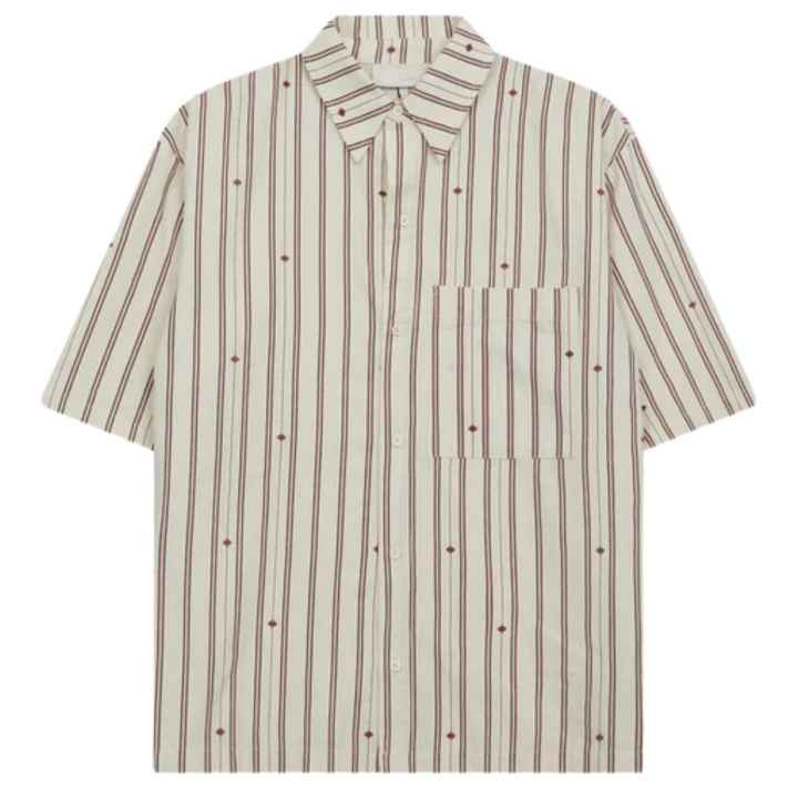 Men Classic Stripe Shirt Short Sleeve Button Down Casual Summer Breathable Lightweight Woven Top OEM Wholesale Supply