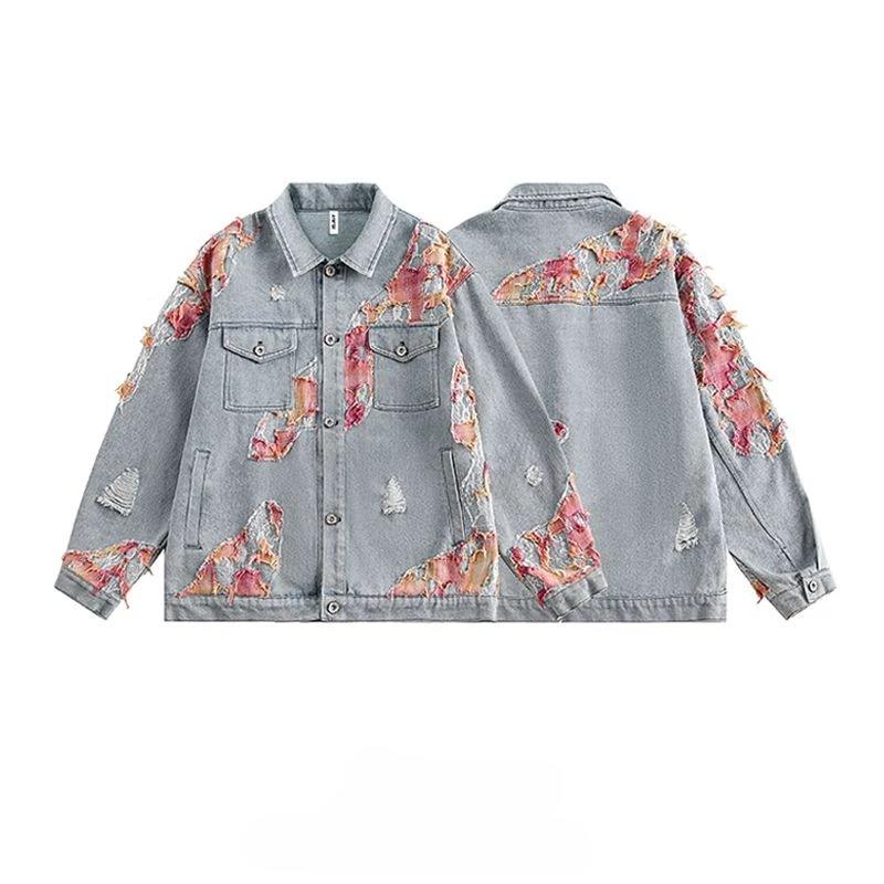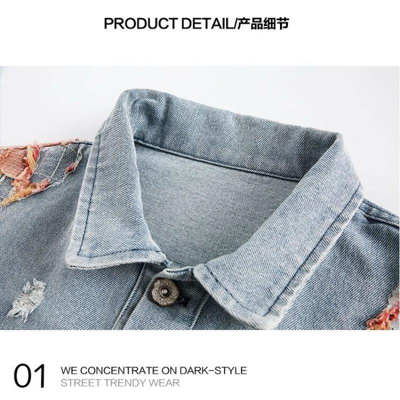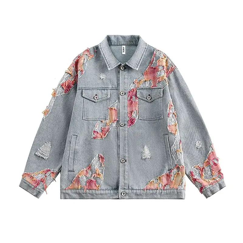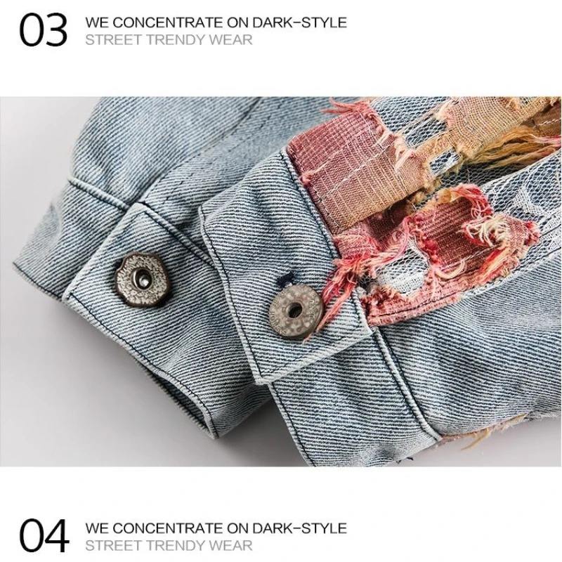Men Clothing 2025 New Coat Vintage lace splicing Destruction Wind Denim Jacket for Men Autumn Streetwear American jacket