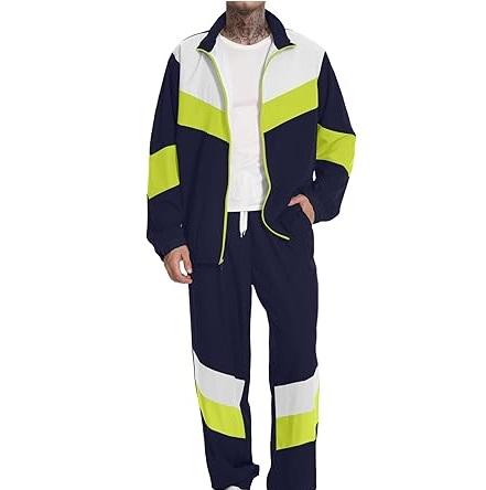 Men Clothing Oversized Jacket Pant Polyester Windbreaker Set Winter Sports Running Jogging Tracksuits Patchwork Streetwear