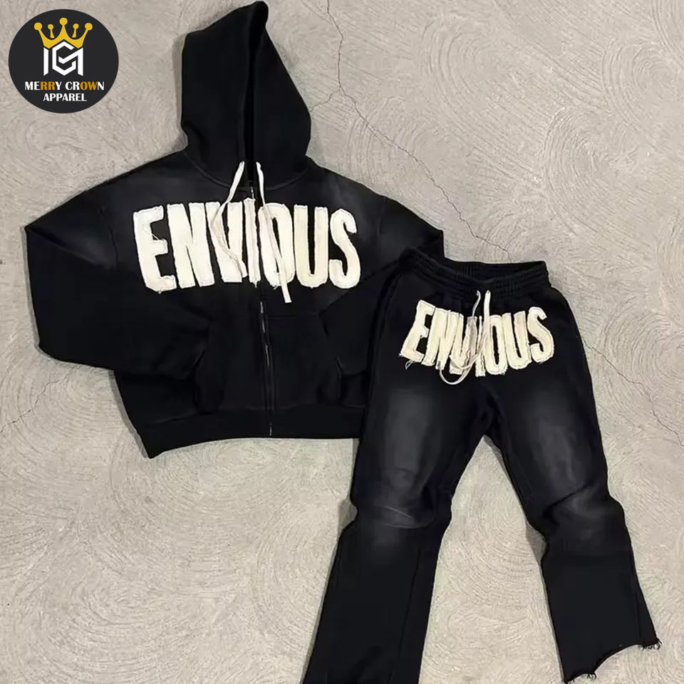Men Clothing Plus Size Tracksuit Unisex Hoodie And Jogger Distressed Embroidery Acid Wash Oversized Tracksuits Set For Men