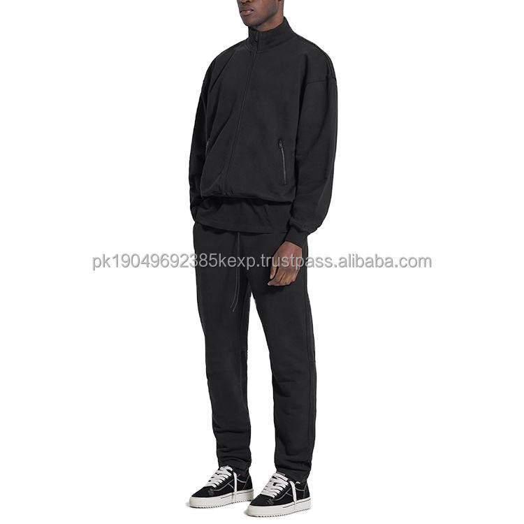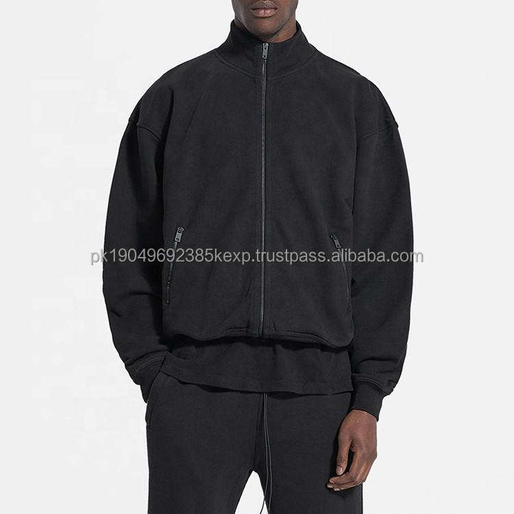 Men Clothing Vendor Casual Knitted Cotton Fleece Two Way Zipper Jacket Double Slide Zipper French Terry Sweatsuit Track Jacket