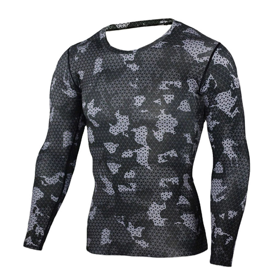 Men Compression Long Sleeve Rash Guard Shirt Sports Base Layer Gym Running Fitness Quick Dry Breathable Athletic Wear