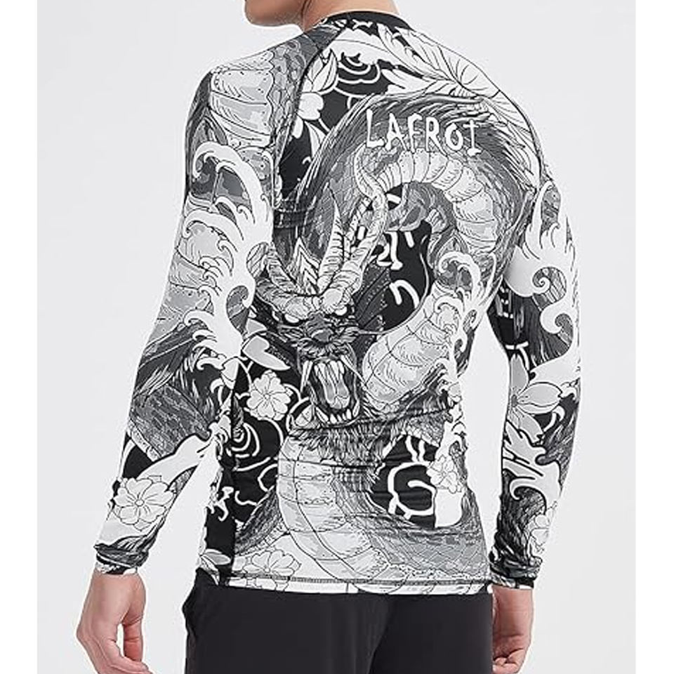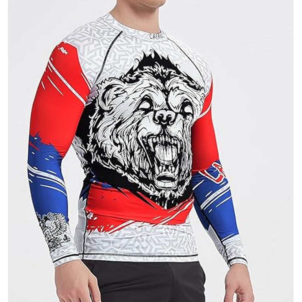 Men Compression Shirt Long Sleeve Rash Guard Graphic Print UV Protection Quick Dry OEM Factory Supply