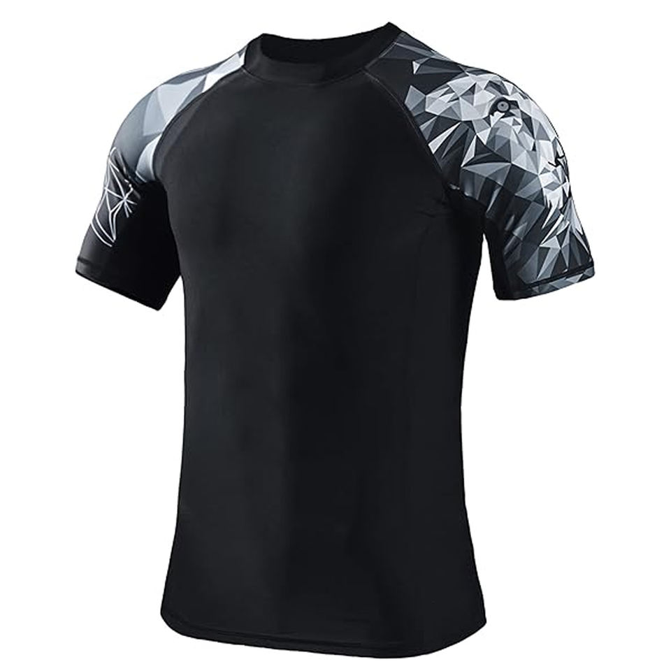 Men Compression T Shirt Rash Guard Short Sleeve Swim Shirt UV Protection Quick Dry Wholesale Supplier