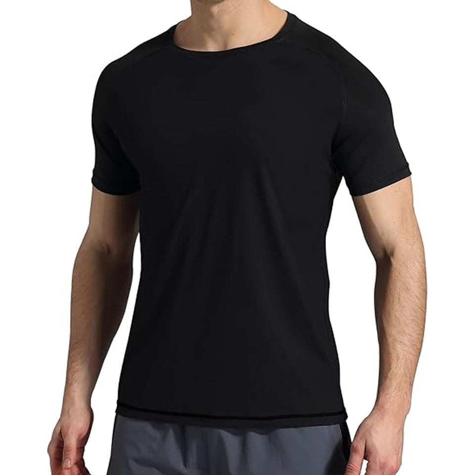 Men Compression T Shirt Rash Guard Short Sleeve UV Protection Swim Shirt Quick Dry Athletic Wear OEM Supplier