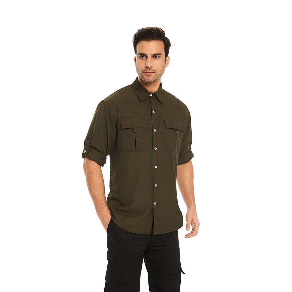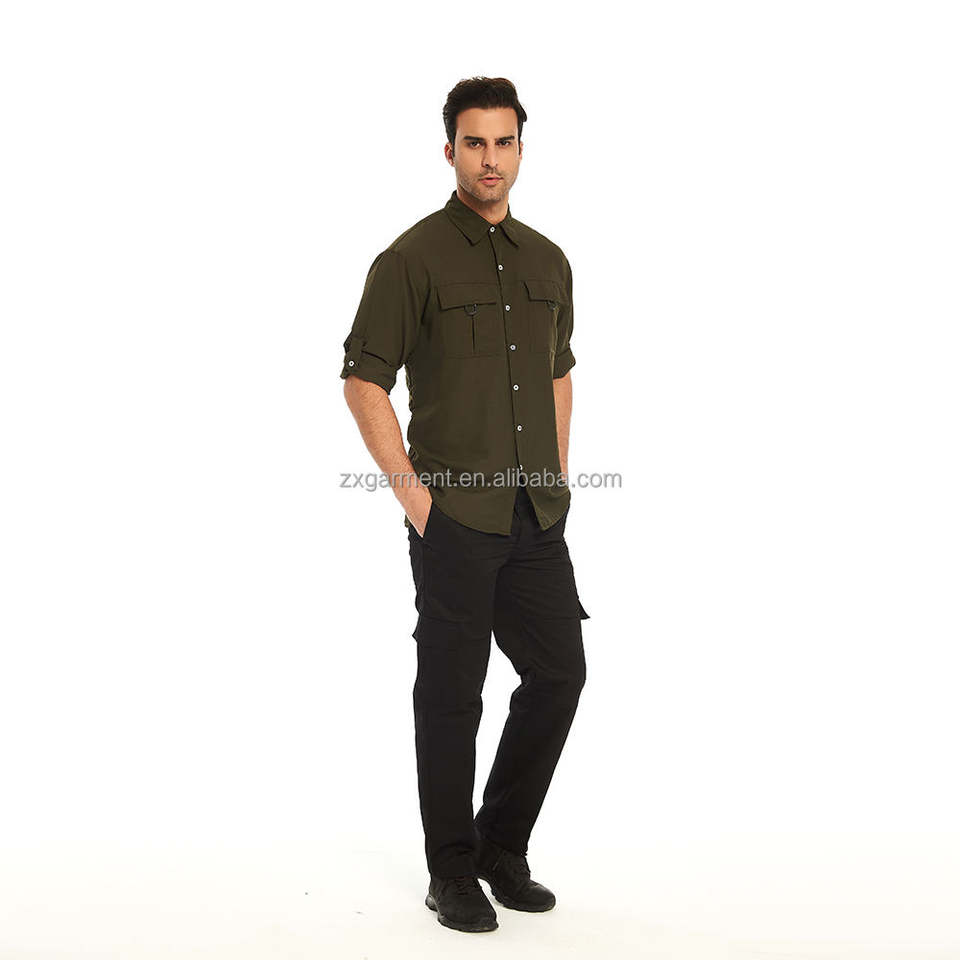 Men Convertible Sleeve Safety Work Shirt Button Vented Back Cotton Anti-UV Quick Dry Flame Retardant Anti-Static Fishing