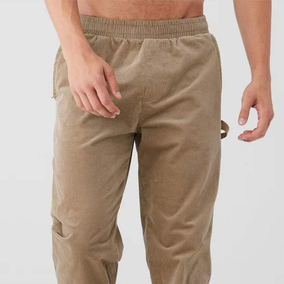 Men Corduroy Cargo Pants with Elastic Waistband and Multiple Pockets, Relaxed Fit Casual Trousers for Outdoor and Everyday Wear