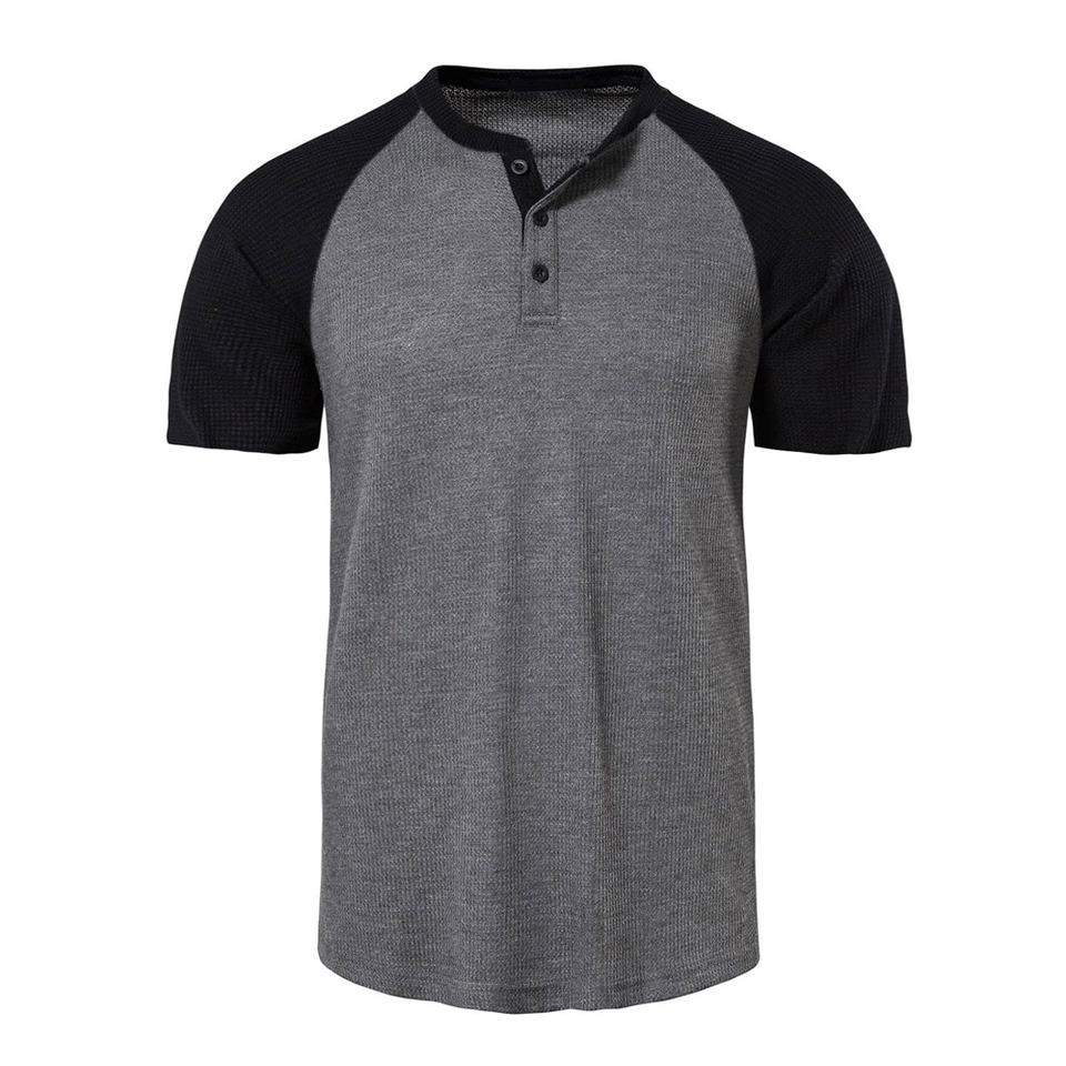 Men Cotton Blend Short Sleeve Henley Shirt With Classic Button Neck And Regular Fit
