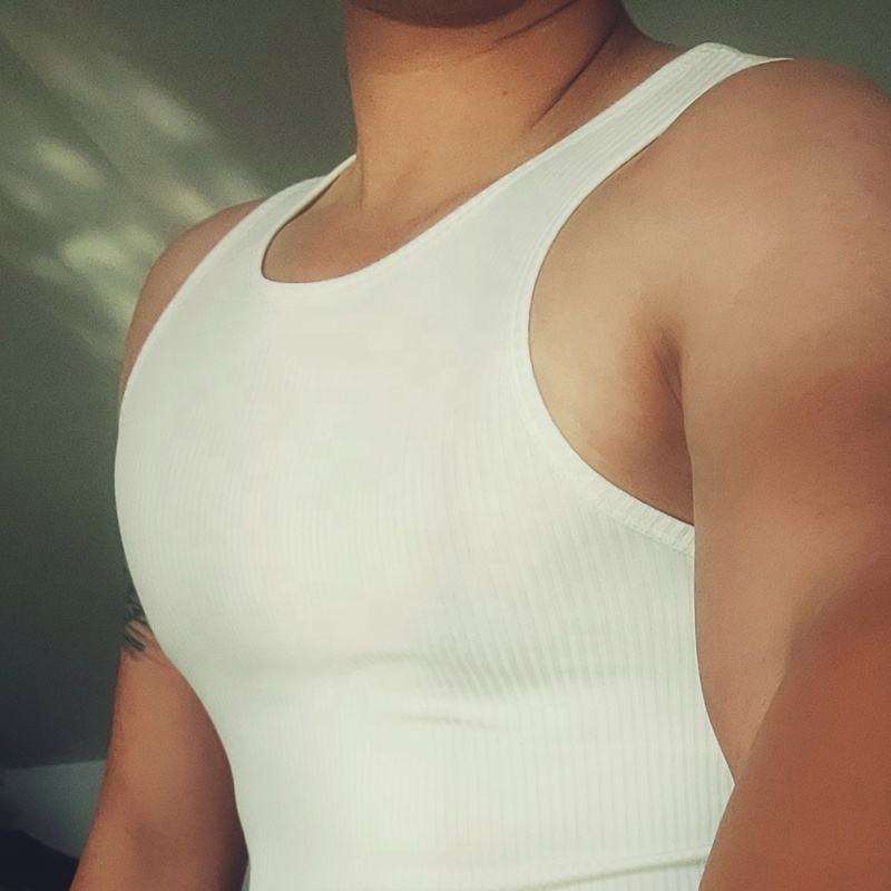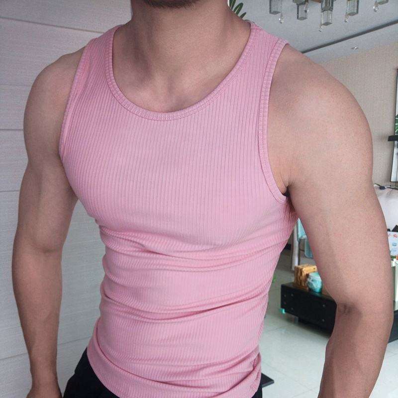 Men Cotton Gym Vest Bodybuilding Ribbed tank Top Stretch Fitness tank Top