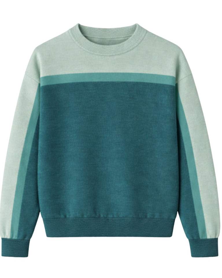 Men Crew Neck Wool Knit Sweater Teal Green Mint Color Block Long Sleeve Winter Casual Pullover Soft Warm Knitwear