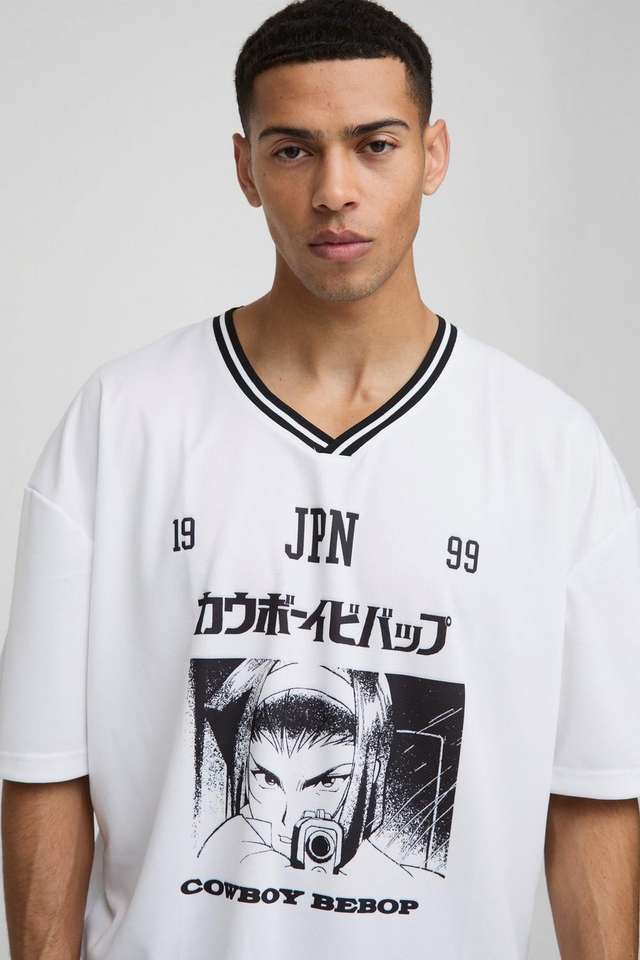 Men Custom Printing White Oversized Cowboy Bepop Anime Mesh License Print T-Shirt Customized Hot Selling Men T Shirt