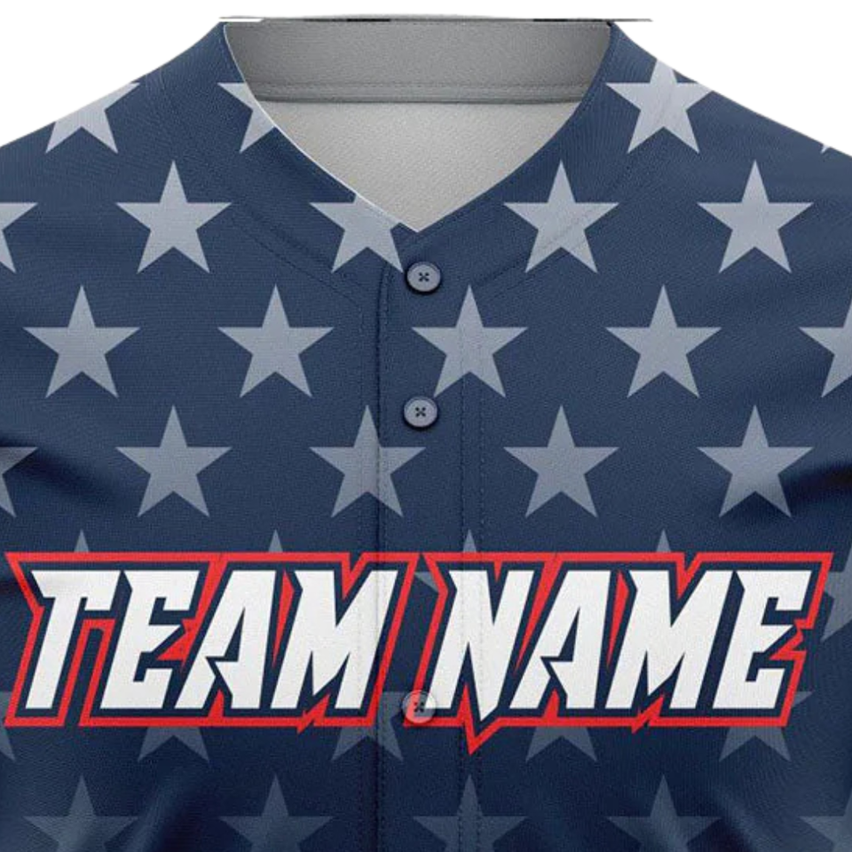 Men Custom Red White Blue Button Up Baseball Jersey USA Style Softball Team Uniform Breathable Athletic Sports Shirt