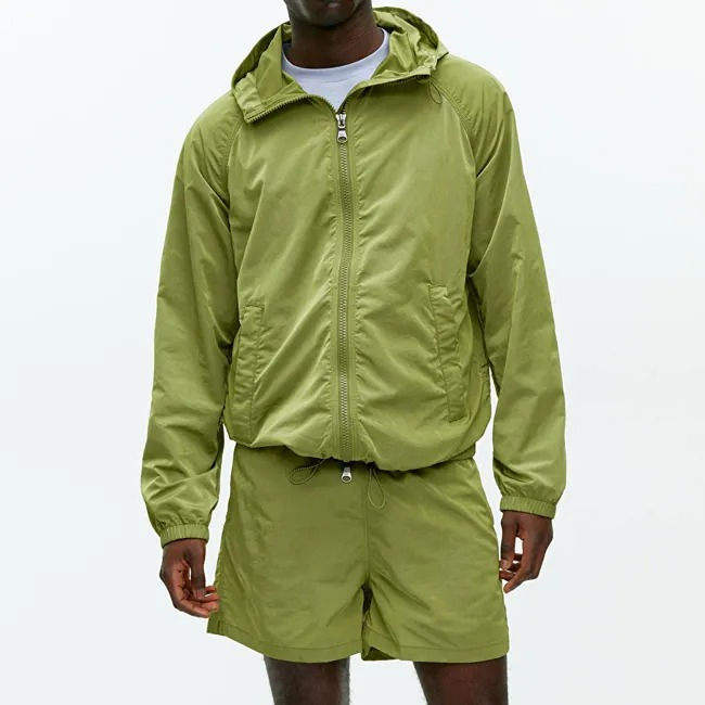 Unisex Custom Stitched Zip-Up Lightweight Spandex/Polyester Tracksuit Blank Regular Fit Autumn Windbreaker Short Set Streetwear
