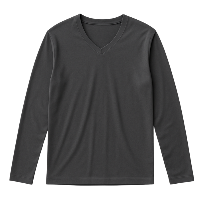 Men Dark Grey 100% Luxury Organic Cotton V Neck T Shirt Pre Shrunk GOTS Certified Premium Long Sleeve Breathable Fit Tee