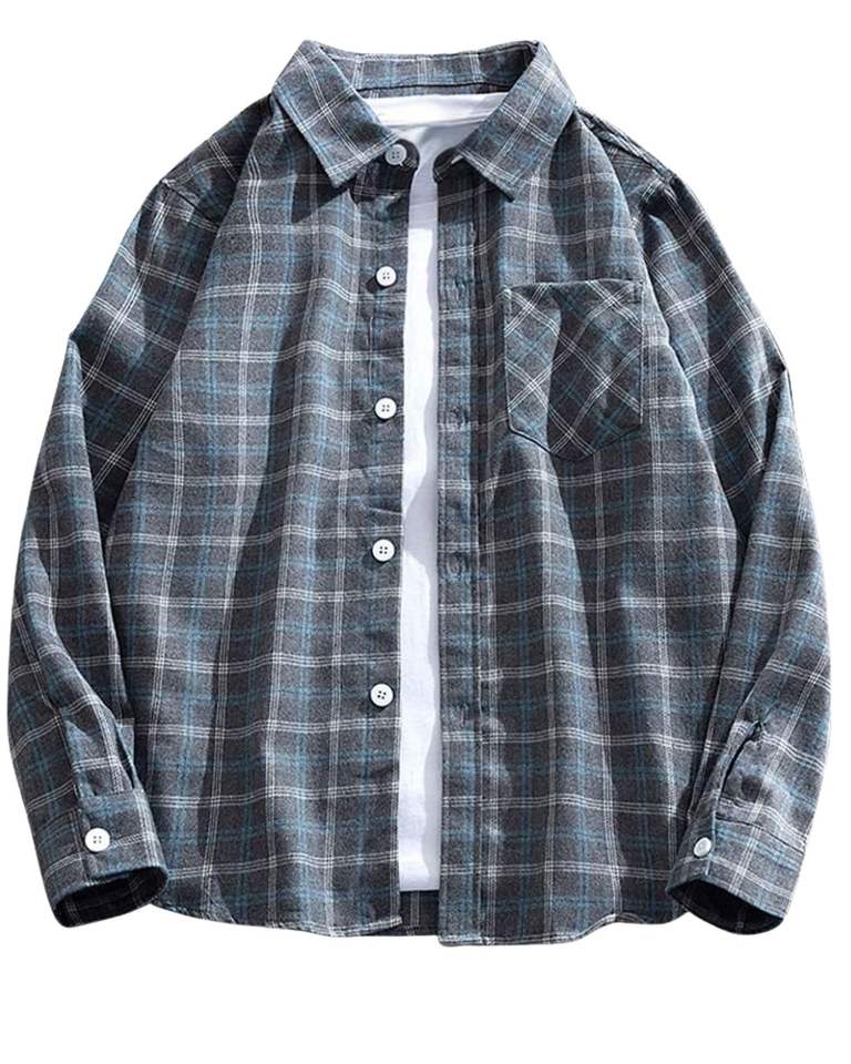 Men Dark Grey Blue Plaid Casual Shirt Cotton Polyester Long Sleeve Button Down Check Pattern Soft Comfortable Wear For Men Daily