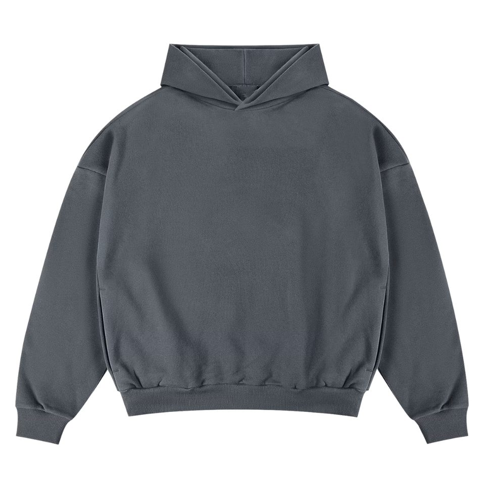 Men Dark Grey Plain Hoodie Oversized Heavyweight Fleece Pullover Streetwear Custom Logo Cotton Thick Warm Winter Casual OEM ODM