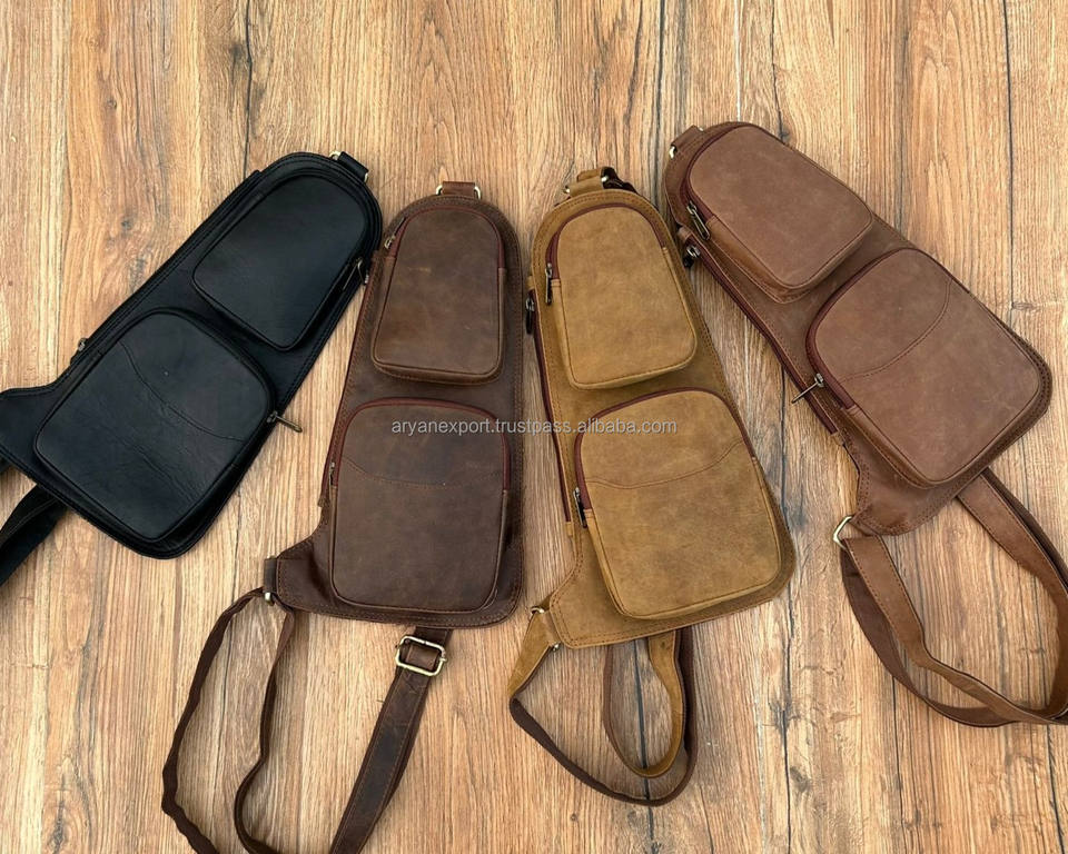 Men Designer Versatile Zippered Pocket Full Grain Genuine Leather Crossbody Chest Bag Vintage High Quality Cowhide Sling Bags