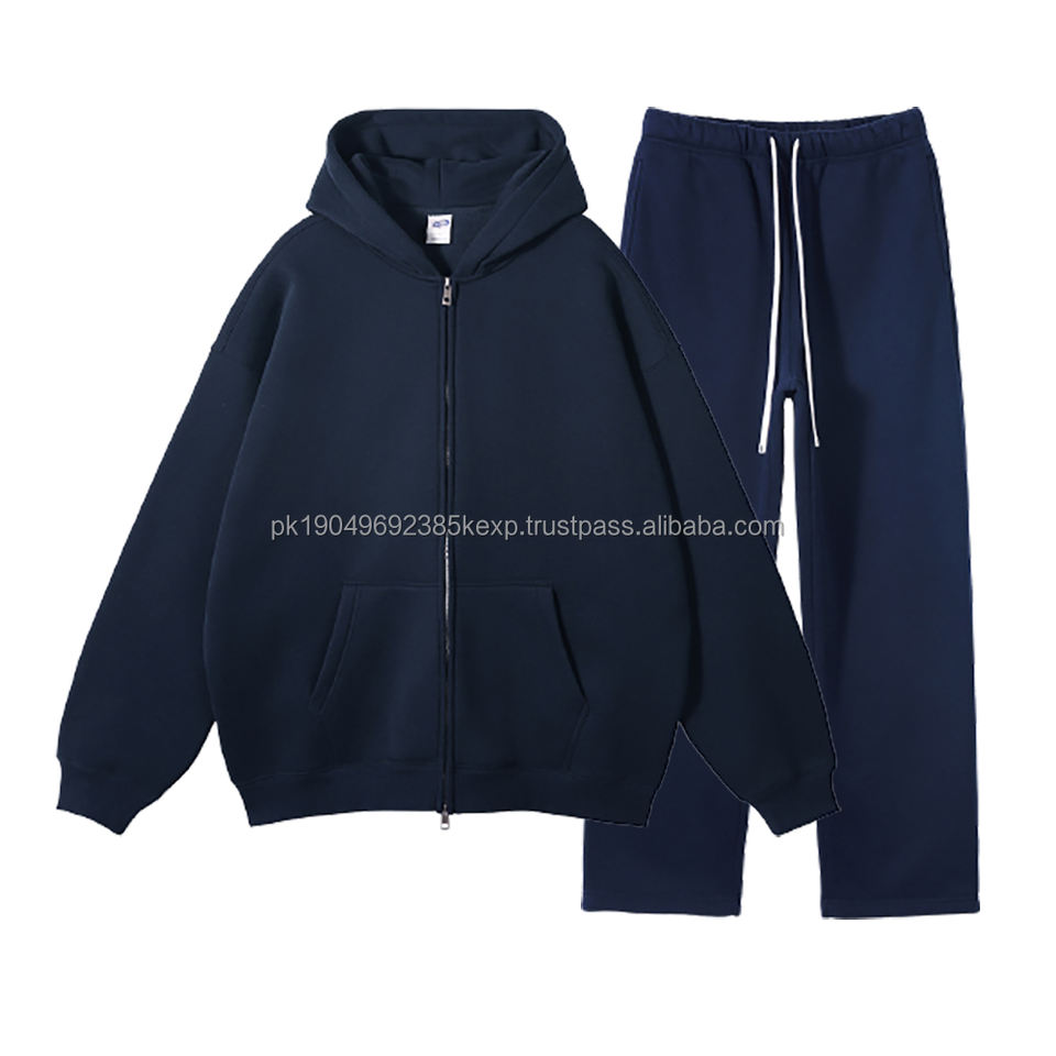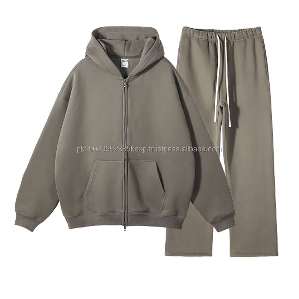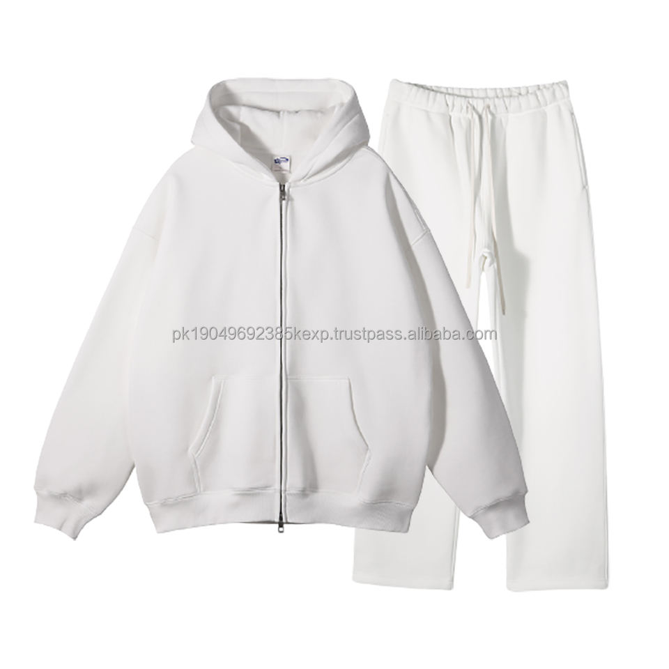 Men Double Zip Up Hoodie Custom 350gsm Freece Rhinestone Sweatpants 2 PCS Set Man Fashion Streetwear Sets Plus Size Tracksuit