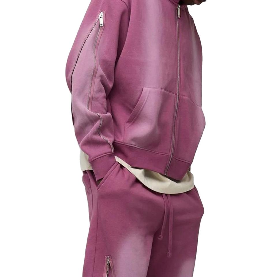 Men Drop Shoulder Zipper Tracksuits 100% Cotton French Terry 450GSM Heavy Custom Weight Men Sun Faded Zipper Tracksuits For Men