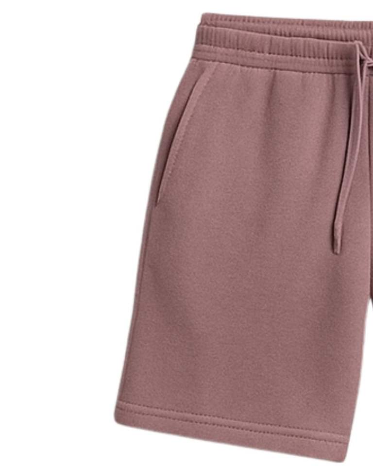 Men Dull Mauve Fleece Shorts Soft Cotton Blend Drawstring Waist Casual Lounge Gym Short Pants Custom Logo OEM Available