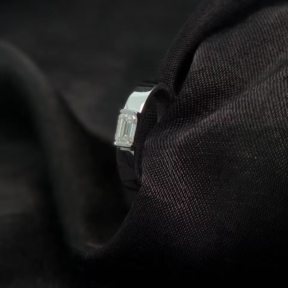 Men Engagement Wedding Ring Igi Gia Certified Lab Grown CVD Blue Diamond 18k 14k 10k White Gold Emerald Cut Diamond Certified