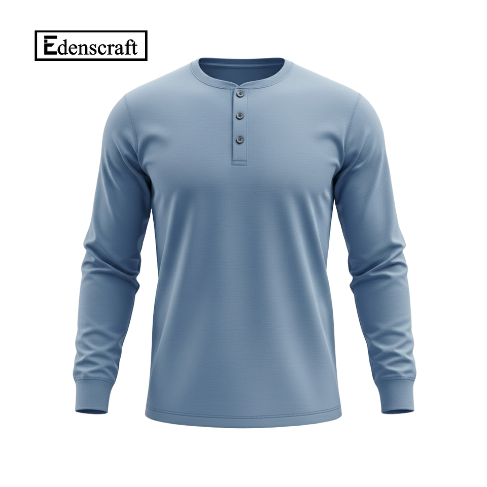 Collar:Henley collar (3-button placket)