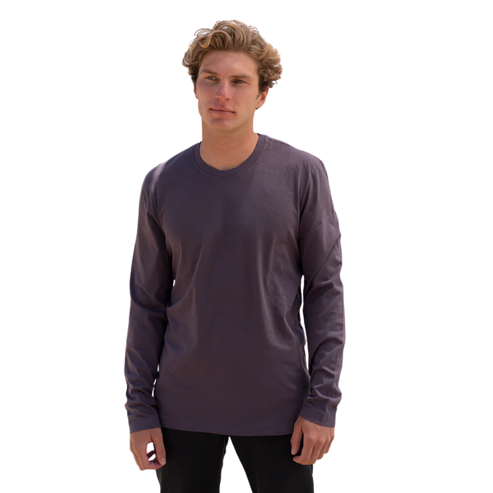 Men Faded Purple 100% Luxury Organic Cotton Crew Neck T Shirt Pre Shrunk GOTS Certified Premium Long Sleeve Breathable Fit Tee