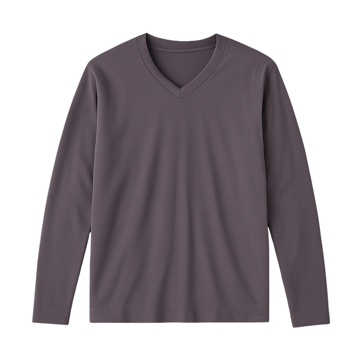 Men Faded for 100% Luxury Organic Cotton Knitted Sporty V Neck T-Shirt Pre Shrunk GOTS Certified Premium Long Sleeve