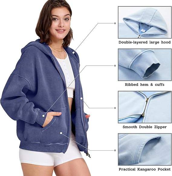 Women Winter Knitted Fashion Hoodie with Front Logo Vintage Washed Pullover