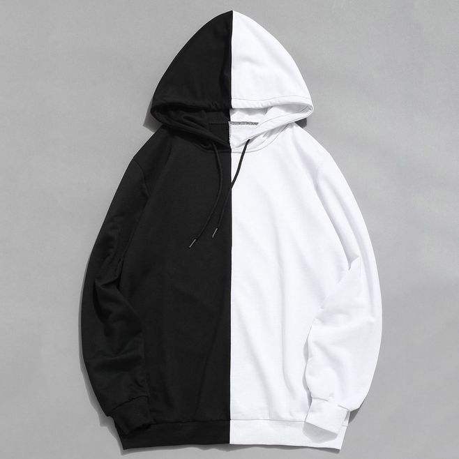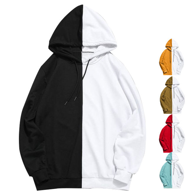 Men Fashion Two Colors Split Joint Hoodies Pullover Street Hoodies