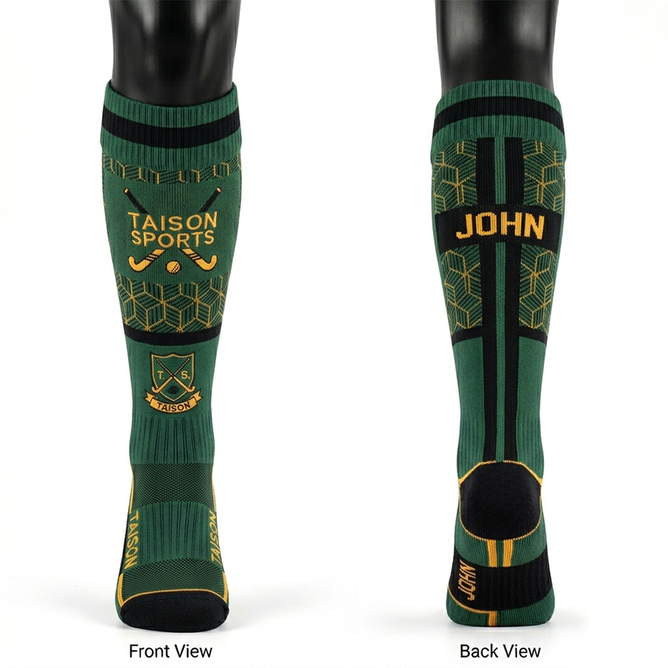 Men Field Hockey Sports Socks Premium 220GSM Moisture Wicking Cotton Polyester Fabric Navy Maroon Yellow Panel Socks Custom Logo