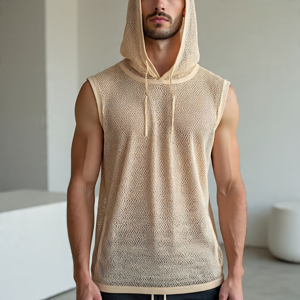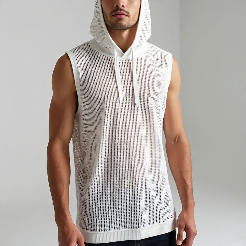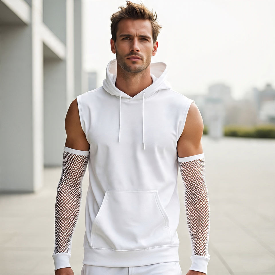 Men Fishnet Hoodie Mesh Sleeveless Tops Singlet Men's Bodybuilding Workout Pullover Fishnet Mesh Hoodie Mens