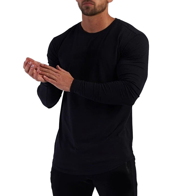 Men' Fitness Long-Sleeved Sports Shirt Boxy Street Wear with Stretch Slim Solid Color Bottoming Neck Casual Sports Apparel