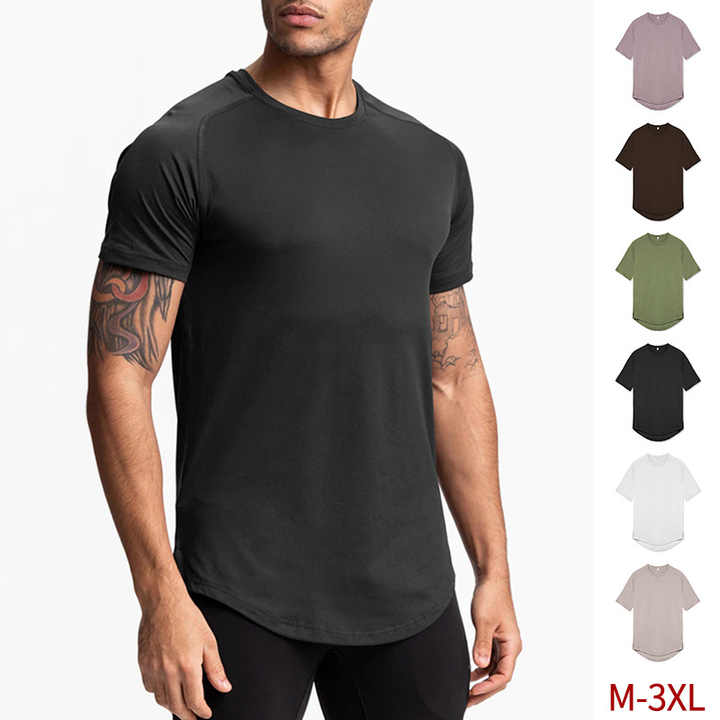 Men Fitness Short Sleeve Shirts 100% Polyester Crew Neck Tops Quick-Dry Breathable Raglan Sports T-shirt for men DDP Shipping