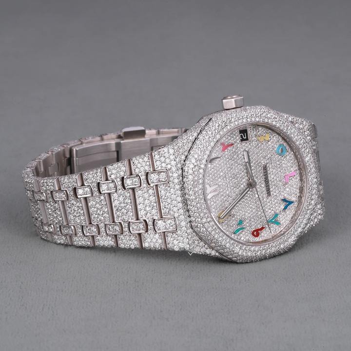 Men Fully Iced Out Wrist Watch with VVS Claty Moissanite Diamonds Crafted in Luxury Color Stainless Steel Hip Hop Style CustOM