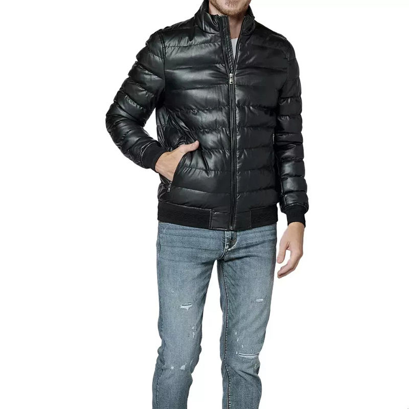 Men Genuine Lambskin Leather Puffer Jacket Down Quilted Leather Bomber Coat High Quality Customized Embroidered Brand Jackets