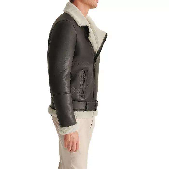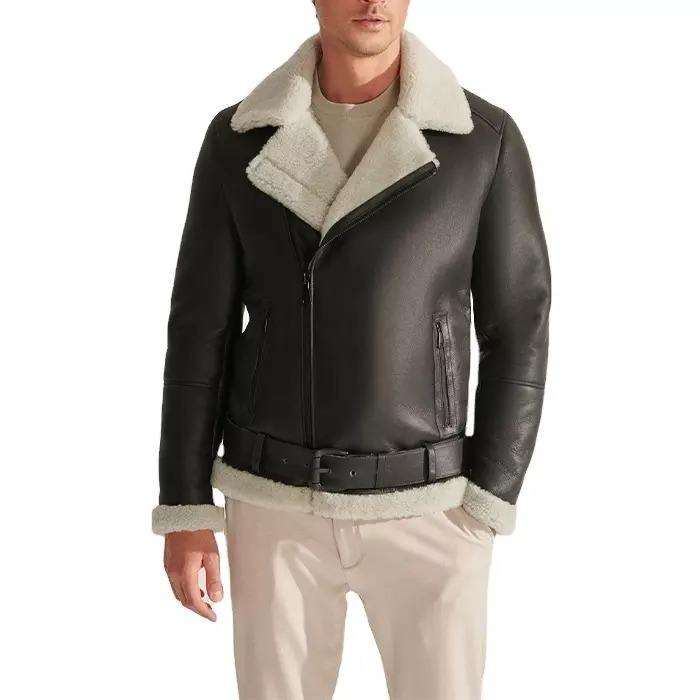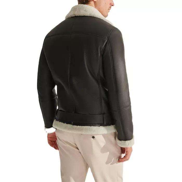 Men Genuine Leather Jacket with Mandarin Collar Waterproof Breathable Anti-Uv