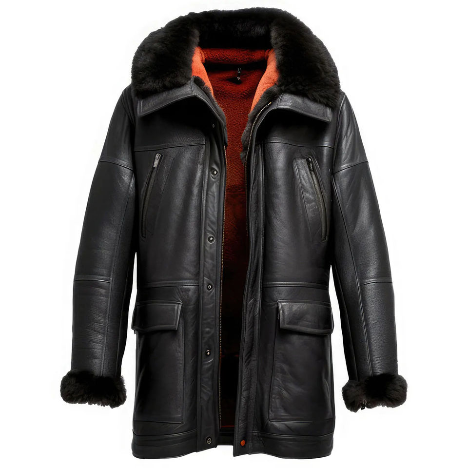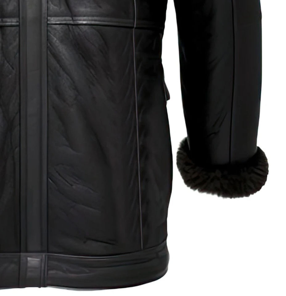 Men Genuine Sheepskin Sherpa Shearling Leather Coats Faux Fur Lined Warm Aviator Breathable Leather Coats