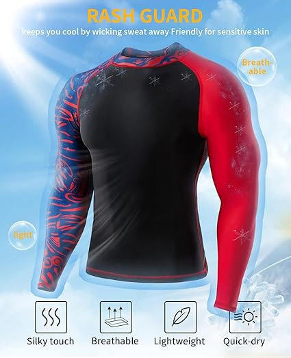Men Graphic Print Rash Guard compression fit rash guard offers UV protection stylish contrast sleeves performance ready comfort.
