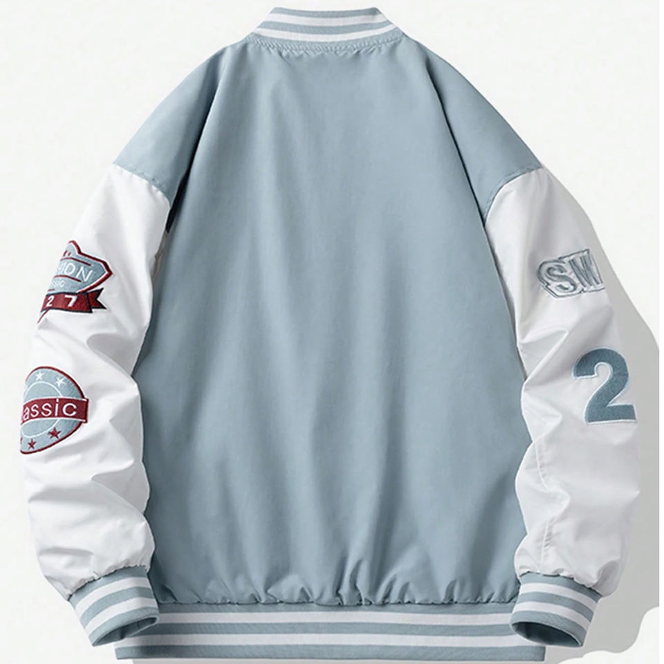 Men Graphic Striped Trim Color Block Jacket, With Custom Size Logo Design College Baseball Varsity Jackets BY AMAZING INDUSTRIES