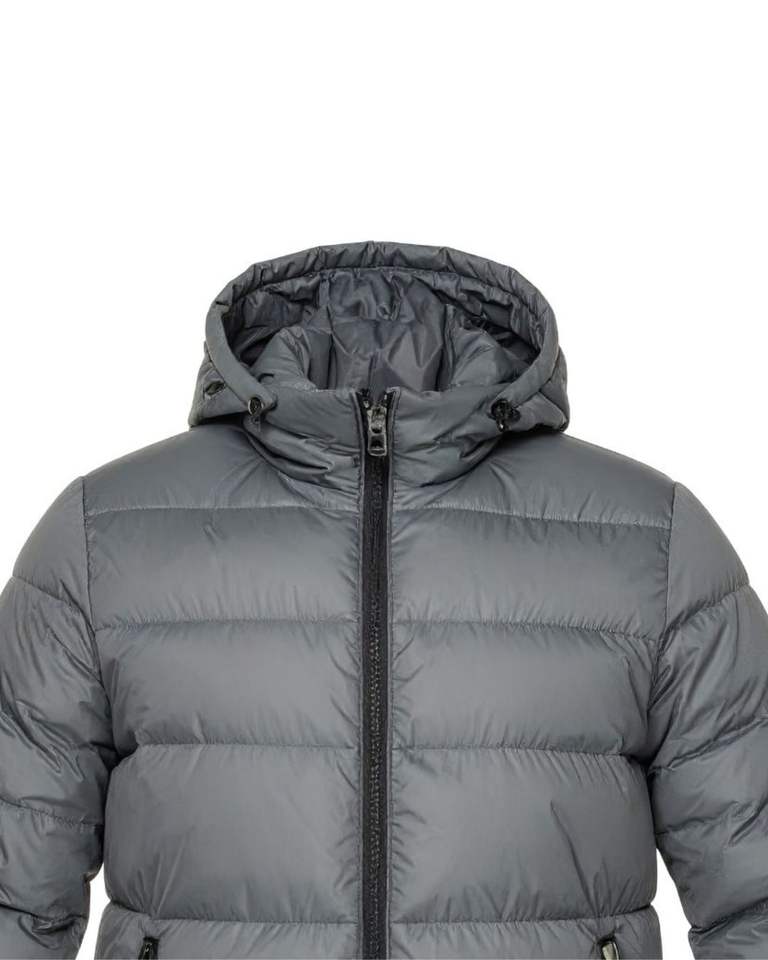 Men Grey Puffer Jacket with Hood Warm Quilted Down Coat Lightweight Windproof Winter Outerwear for Outdoor Activities