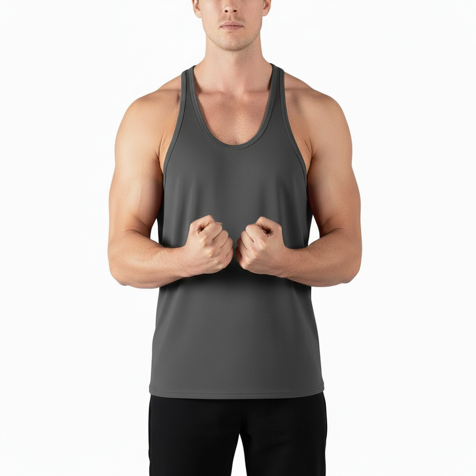 Men Grey Racerback Tank Top Ultralight Sleeveless Gym Workout Running Fitness Singlet Training Vest OEM Wholesale Price